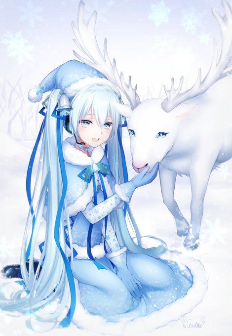 白いトナカイとサンタミク❄️ MerryChristmas🎄+.☆ #初音ミク #クリスマスイラスト