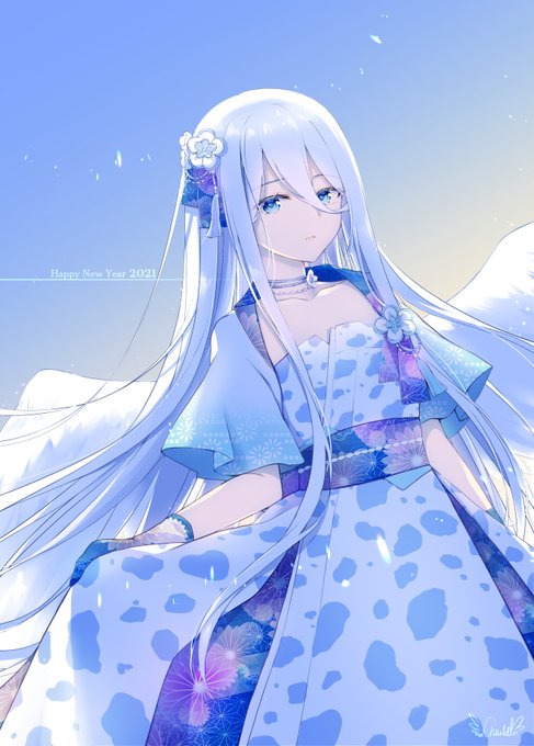 17 62 澄んだ青空、牛柄和風ドレスで新年のご挨拶申し上げます。今年もどうぞよろしくお願いいたします! #年賀状イラスト #年賀状2021 21/01/01 18:28