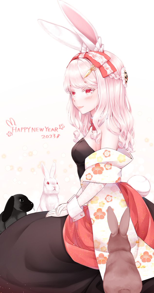 1 1 うさぎとバニードレス🐰♥。・゚ 光に満ちた年の始まりを💐 #うさぎ年 #年賀状イラスト 23/01/02 11:09