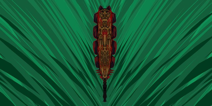 #Swordtember day 13. Concepto del macuahuitl de un Guerrero Jaguar. #Ocelopilli X #Macuahuitl #Mexican #mexicana #mesoamerica #traditional #weapon #arma #azteca #aztec #sword #maze #obsidian #wood