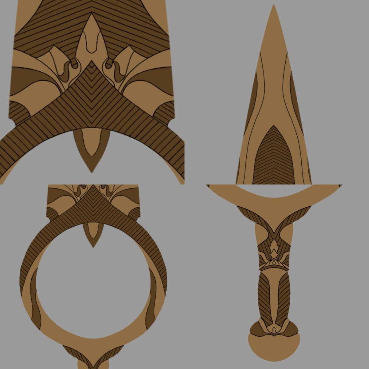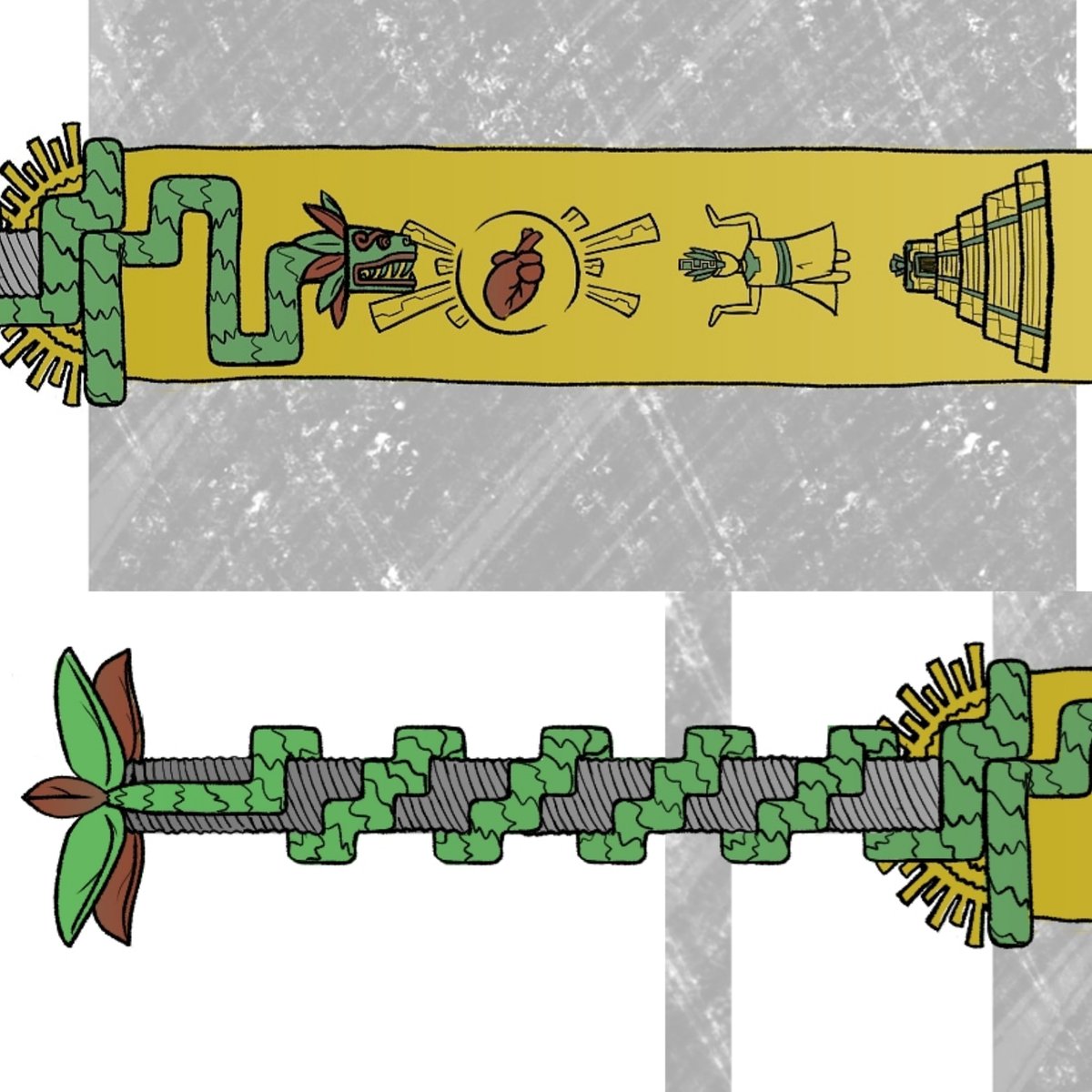 #Swordtember day 3. Prompts: Quetzalcoatl / Germanic Executioner Sword Its not centered, Iknow, but im tired lol. #sword #executioner #germanic #Quetzalcoatl #mesoamerica #gold #jade #sacrifice #motif