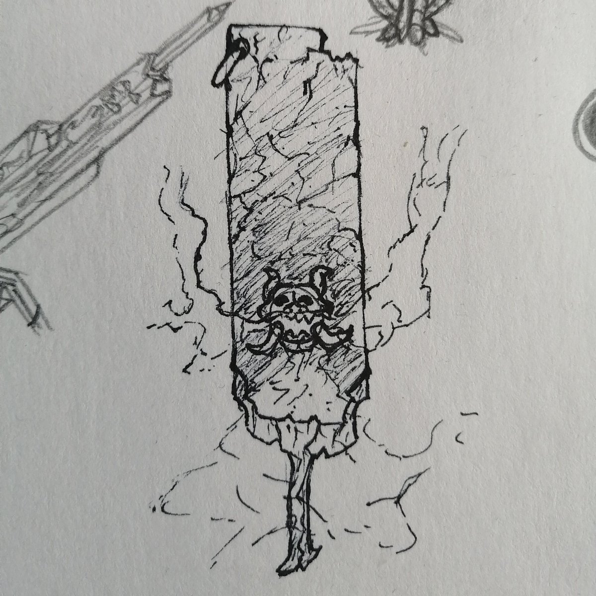 #Swordtember day 8. Would the opposite of Holy Smokes be Hellish Fumes? #smoke #demon #demonsword #oozing #stone #sword