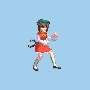 1 1 ドット絵 幻想郷救世主チェンシロウ 「オレの八雲真拳は無敵だ!」 #ドット絵 #東方Project #橙 20/06/01 18:23