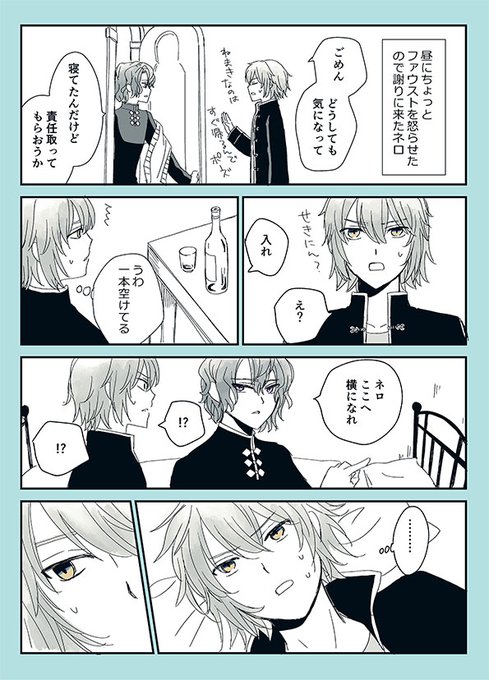 5 55 昨夜いただいたリク、眼鏡なしの寝巻きファウストか寝巻きネロでいただいたのですが両方描きました! 夜中にドアを開けてくれるファとネロは開けたら居ましたがどうした ありがとうございました~! 23/05/05 12:16