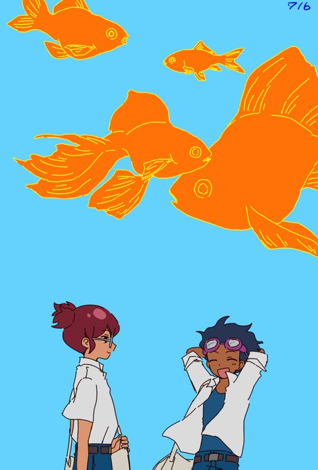昔描いた絵の系譜なんだわ(このポーズ好きすぎ) まあモネっちも無限に睡蓮描いてたから 誕生日おめでとう綱海