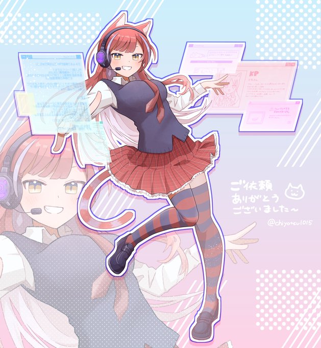 ご依頼で立ち絵描かせていただきました!チェシャ猫モチーフの女の子だそうです🐱