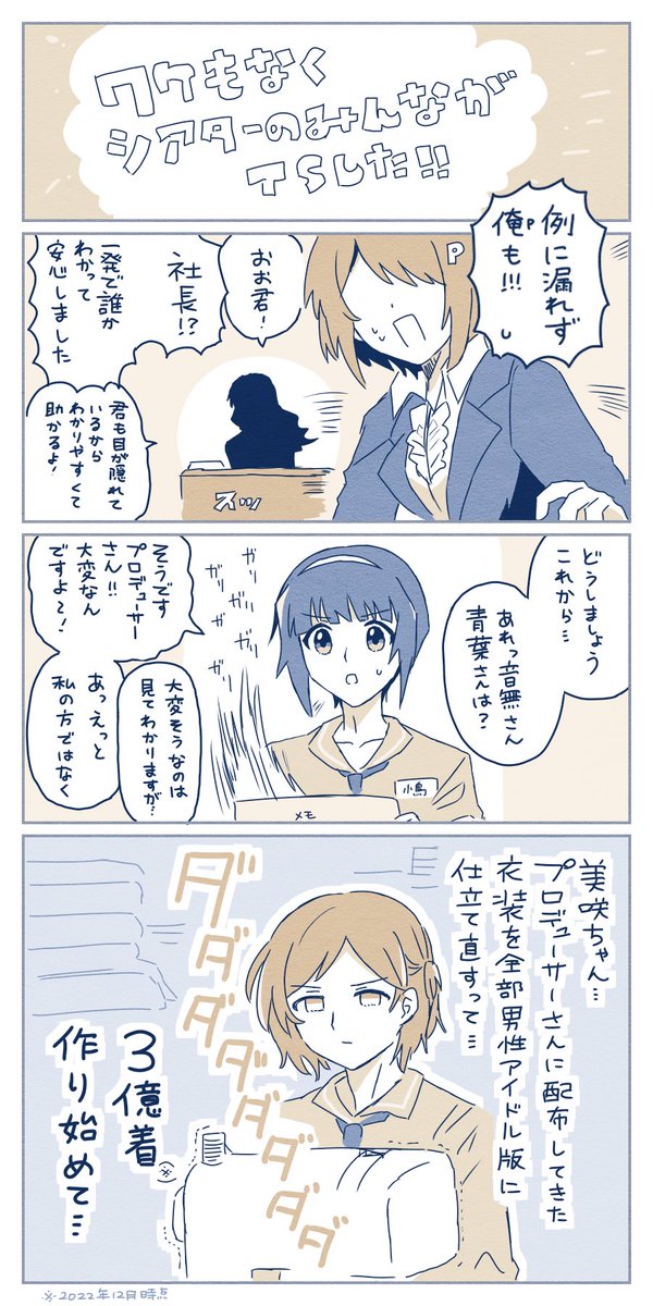 427 1089 アイドルに制限しなかったのはこれ描きたかったからでした #ミリオンライブTS部 23/08/15 11:39