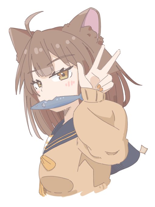 お魚くわえたレオナちゃん ばいびーって感じのやつ #レオナアート #獅子神レオナ