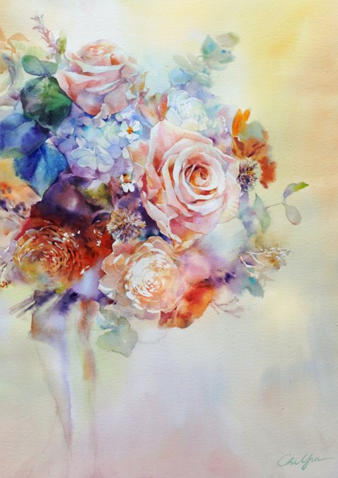 My work. <Happiness> Watercolor,2k. #watercolor #水彩画 #ハナ #バレンタイン #rosepainting #flowerpainting #floralpainting #цветок #taiwan #artist #painting #artwork #illustration #水彩 #art #artwork #drawing #watercolorpainting #watercolorart