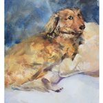 My work. (Working Progress) 《A-CO laying on the rug》 Watercolor,4K,2022 #daschund #臘腸狗 #dog #水彩画 #水彩 #watercolor #taiwan #painting #illustration #art #藝術 #drawing #watercolorpainting #pet #petportrait #dogportrait #animalart