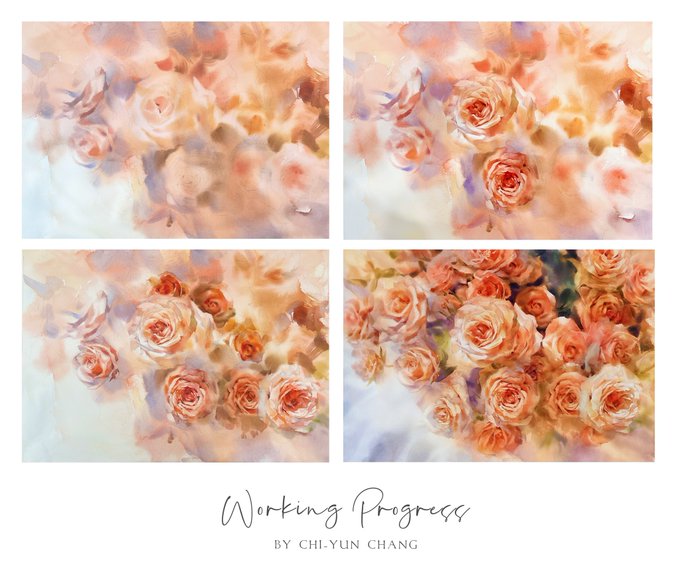 My work.Working progress. <Happiness> Watercolor,2k. #watercolor #水彩画 #ハナ #バレンタイン #rosepainting #flowerpainting #floralpainting #цветок #taiwan #artist #painting #artwork #illustration #水彩 #art #artwork #drawing #watercolorpainting #watercolorart