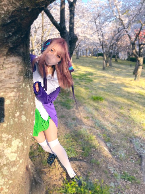 自撮りがんばるししろん お弁当作ったの、褒めて💮、 #獅白ぼたん #shishirobotan #ししらーと #獅白ぼたんコスプレ #ホロライブ #hololive #コスプレ #cosplay #cosplayer #桜 #お花見 #sakura