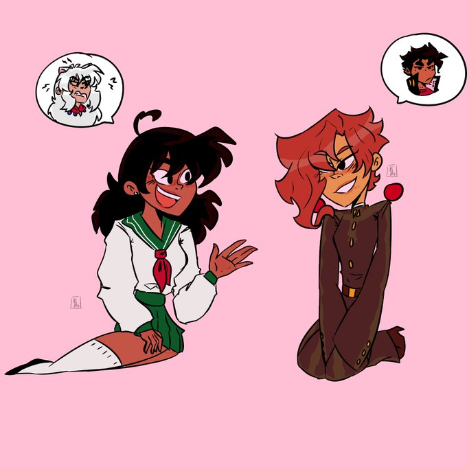 i think they'd get along #inuyasha #kagome #crossover #doodle #digitalart #art #myart #jjba #inukag #jotakak #kakyoin #jotaro #jojosbizarreadventure