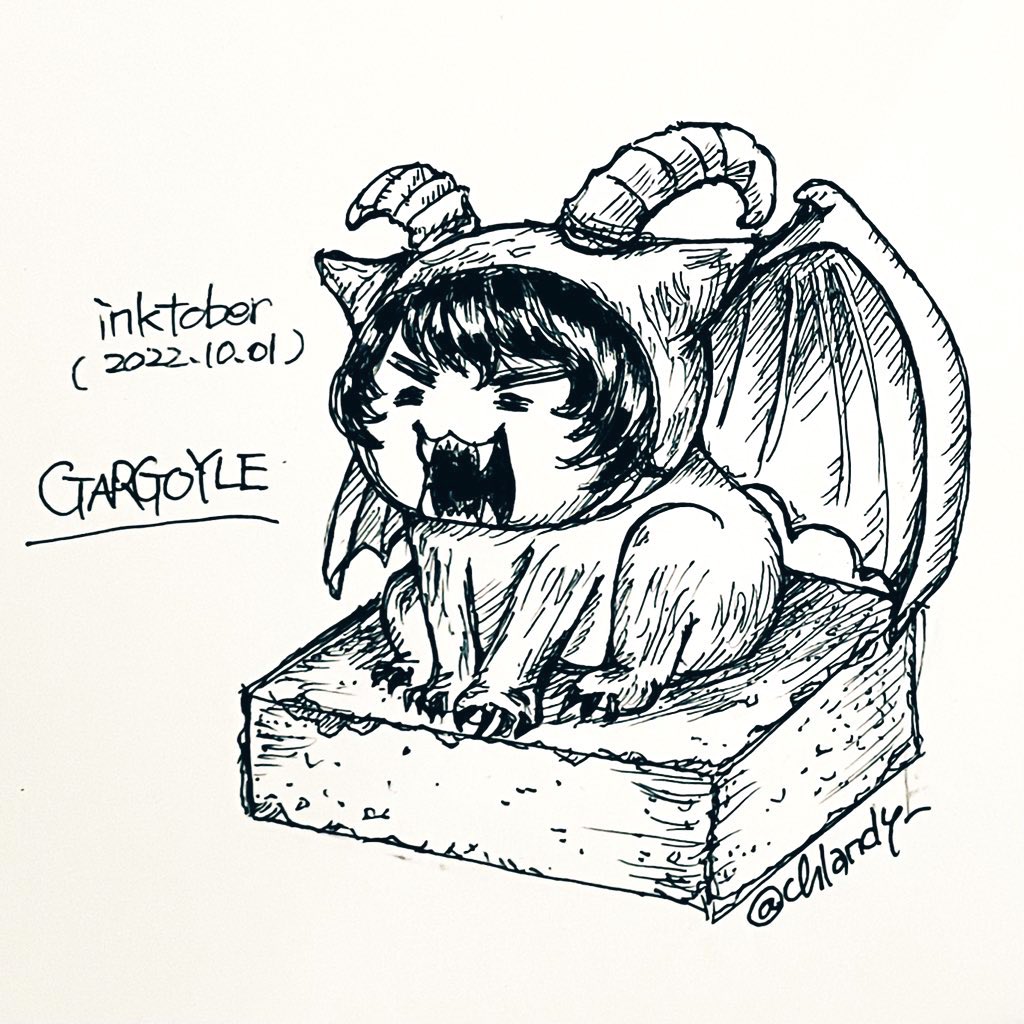 7 42 #inktober2022 day1.GARGOYLE (遅刻) にゃんくとーばー にゃーごいる #もうひとつのにゃんパル 22/10/03 20:45