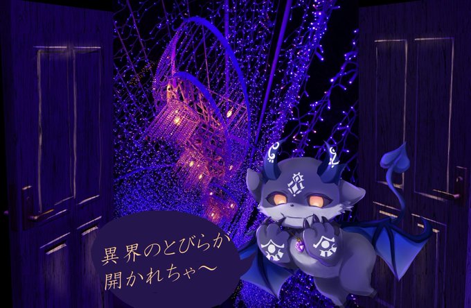 2 26 #でびる様発生祭崇拝写真 #でびるさまにささげるえ イルミネーション写真をバッグに扉やでび様を描き加えました! 明日の発生祭楽しみだ〜🍾✨ 21/12/17 19:55