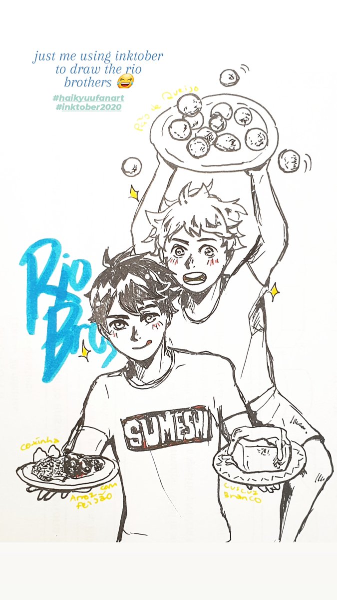 today we rio bros... oikawa ken watanabe tooru and hinata ninja shouyo and because i basically love food #inktober2020 #inktober #haikyuufanart #haikyuu