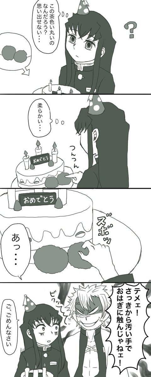 おはぎケーキイラストかわいすぎてもう一枚描いた! #不死川実弥生誕祭2020 #鬼滅の刃イラスト