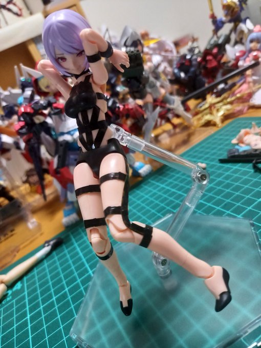 終わった! ヴェイパーヘイズで1時間42分 武装込みで5時間35分 素体から構造が新鮮過ぎて組み始めて「私が今組んでるのは本当にメガミデバイスなのか?」と疑いかけたけど、いざ素体が組み上がったら「あ、これメガミデバイスだ」ってなって安心した! #メガミデバイス #金潟素組みRTA twitter.com/cho_ebizusi/…