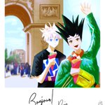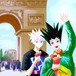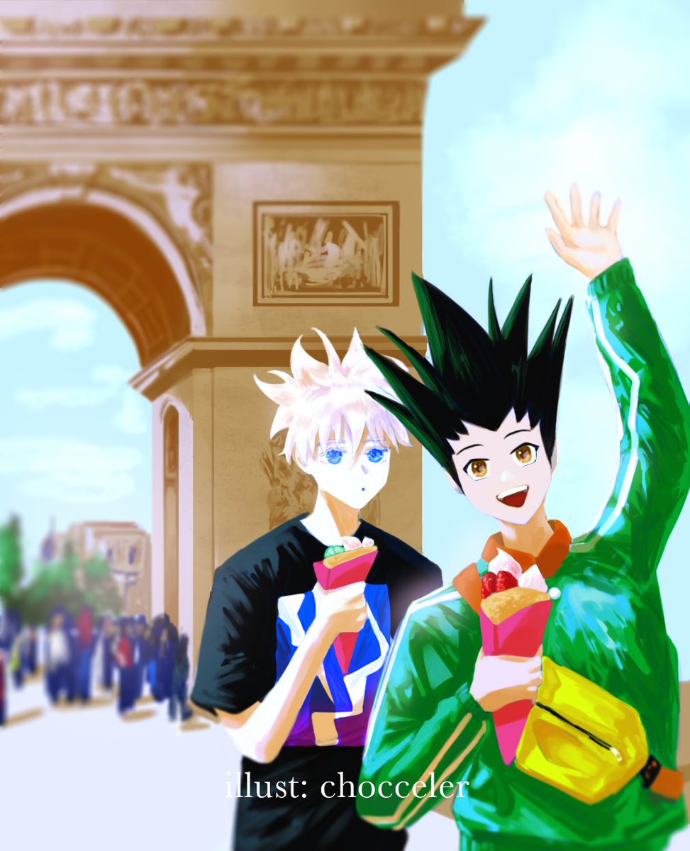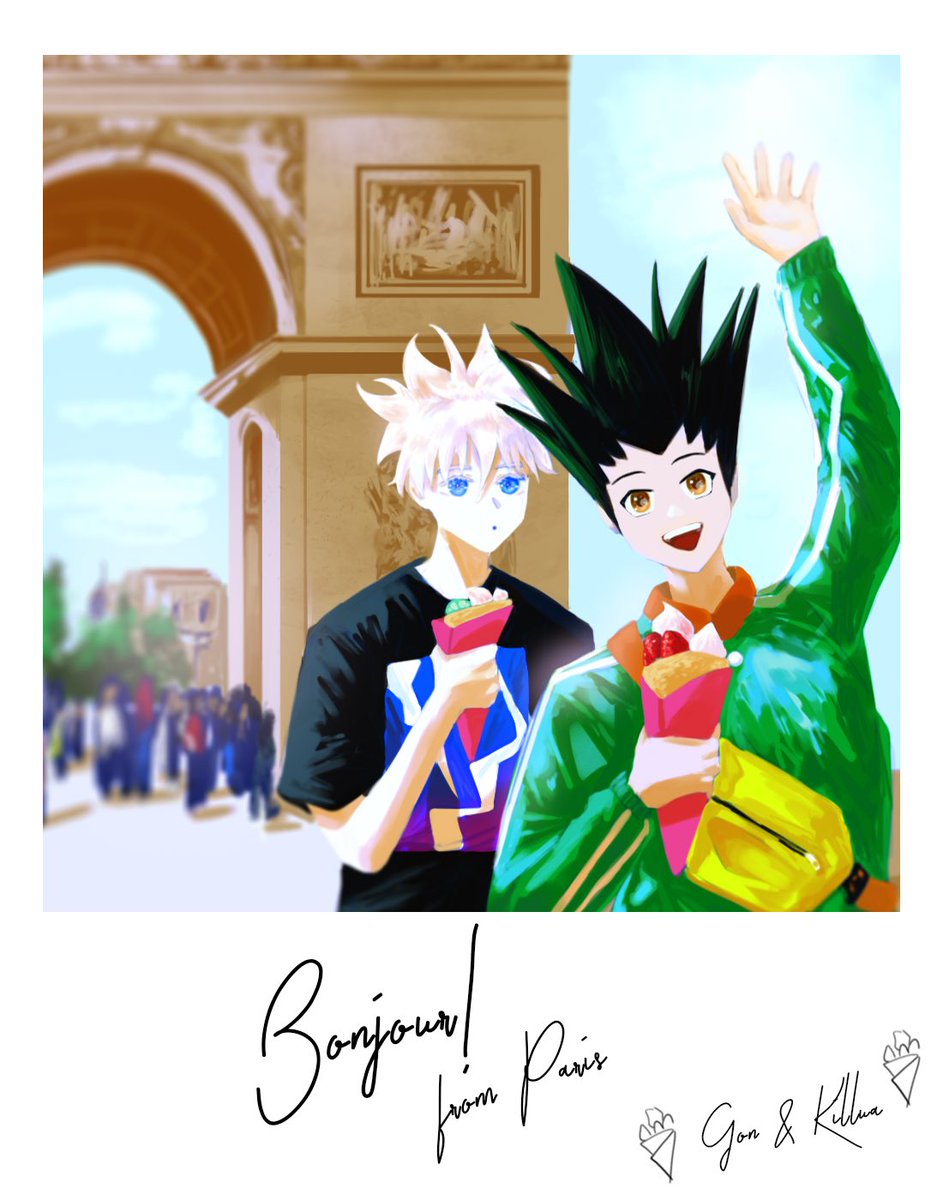 my entry for @HxHTravelZine polaroid contest! Gon and Killua eating crêpes in Paris #HxHLetsEmbark #hxhfanart