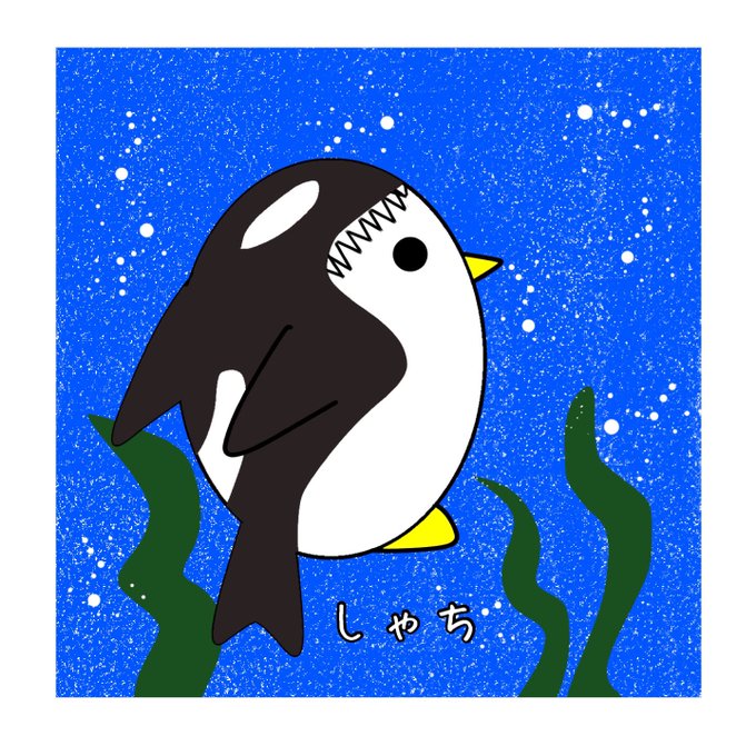 再掲「ペンギン×シャチ」 #イラスト #絵 #ペンギン
