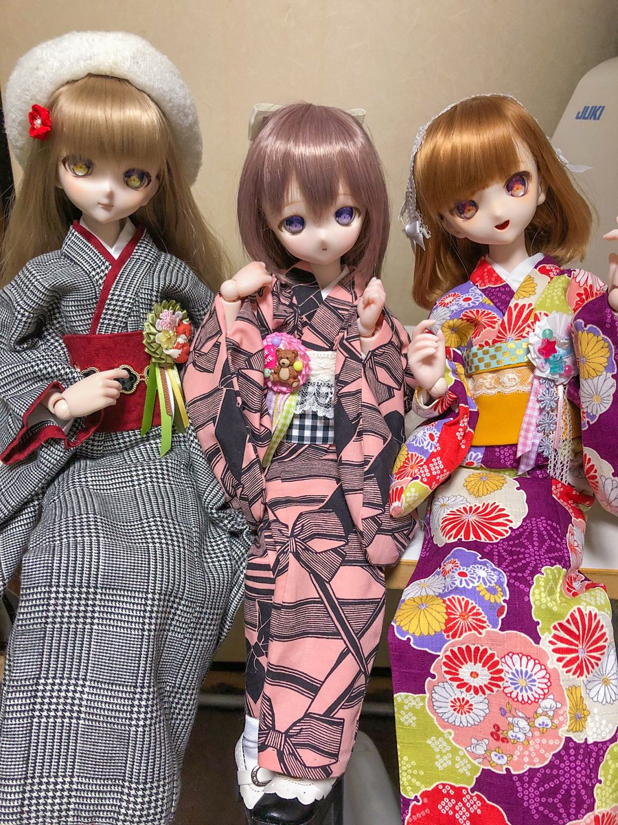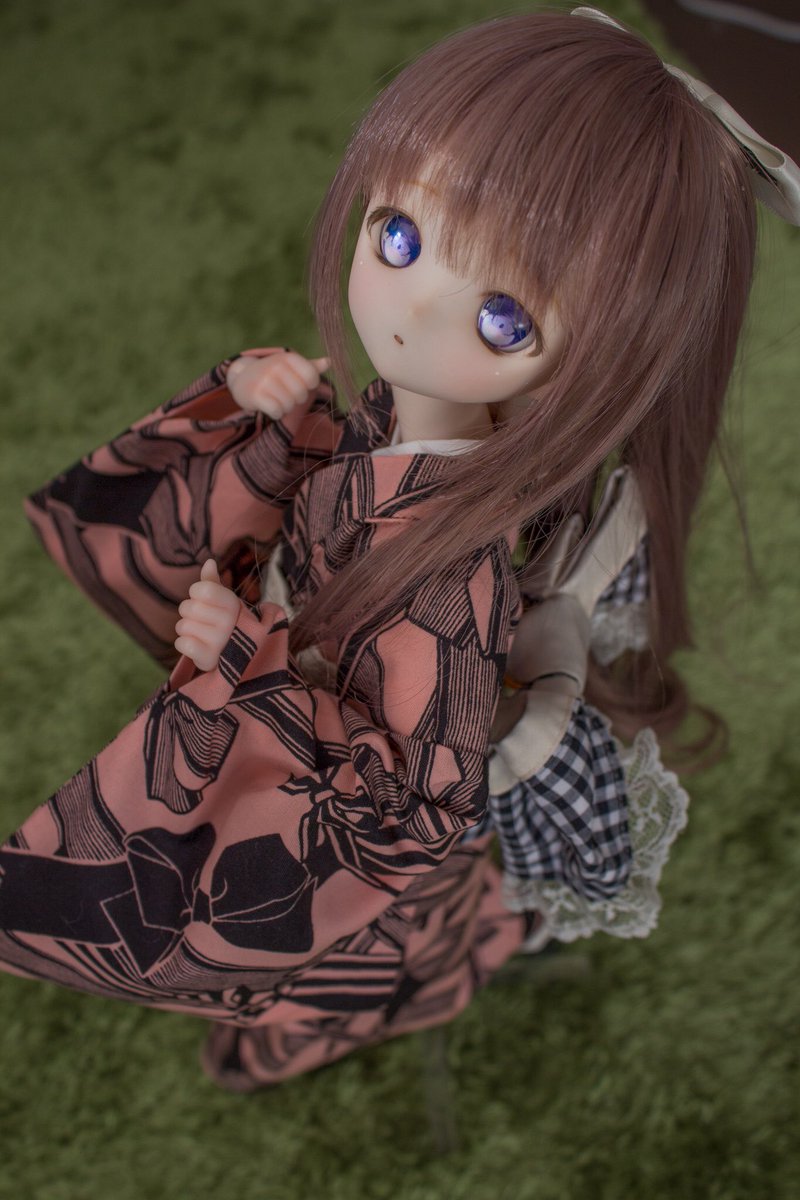 着物?浴衣?作った〜✨ DDPサイズだけど着物だからMDDにサイズ調整できちゃうのは着物のいいとこ👘 ギンガムチェックの帯もフリフリしててお気に入りです🤍🖤 #MDDはいいぞ #ねるっ子
