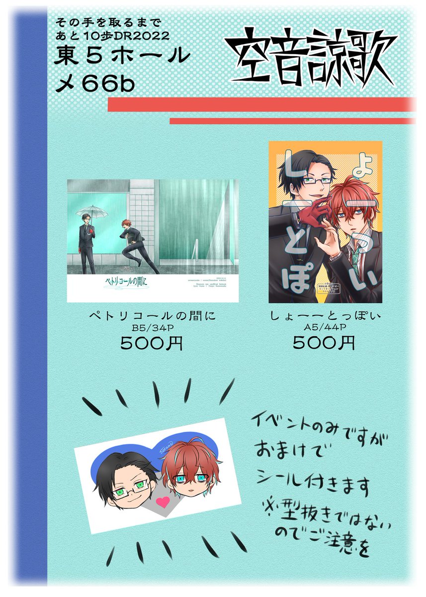 12.11銃独オンリー 東5ホール・メ66b ツイッター上でもお品書きを失礼します!作品のサンプルはこちらよりご確認を。初参加ですがどうぞよろしくお願いします…! pixiv.net/artworks/10243… pixiv.net/artworks/10315…