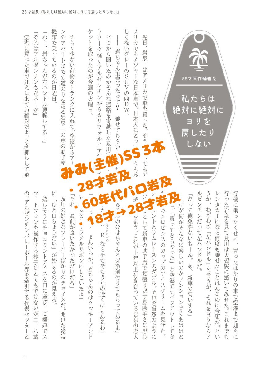 5/4SCC岩及襲い受けチャレンジ本『もうおとなですから!』 | みみ5/4東6め35ab pixiv.net/artworks/10750… 28歳及川襲い受けチャレンジVS及川を甘やかしたすぎる男岩泉♥余計な知識を仕入れてきた及川くんが岩ちゃんにめろめろにされる本 【通販】ec.toranoana.jp/joshi_r/ec/ite… anemonemimi.booth.pm/items/4703854