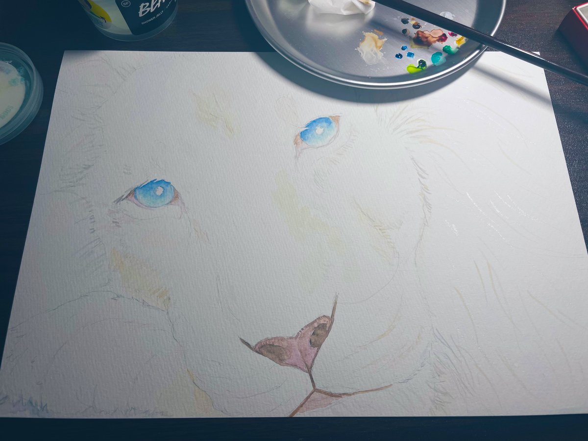 楽しくなりすぎて ちまちま描いちゃって 進まないやーつ #水彩 #ホワイトライオン #描きかけ