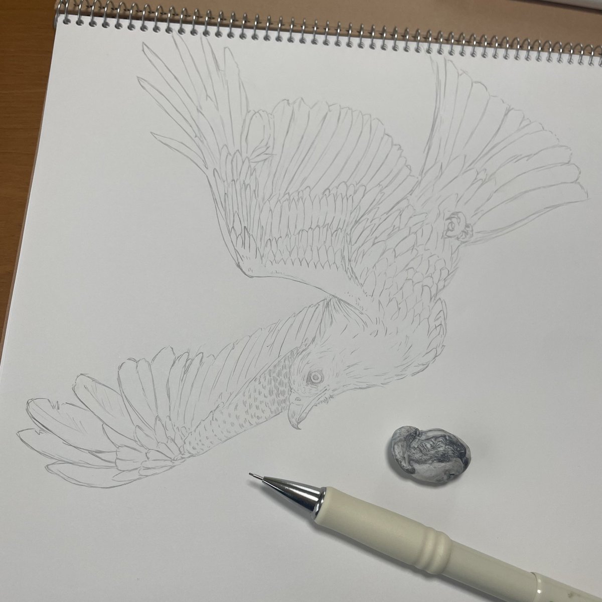 舞い上がる所も 滑空する所も 所作や曲線が息を飲むほど 綺麗で美しい生き物 ここから水彩で塗ろうか悩む #drowning #art #bird #イラスト #鳥