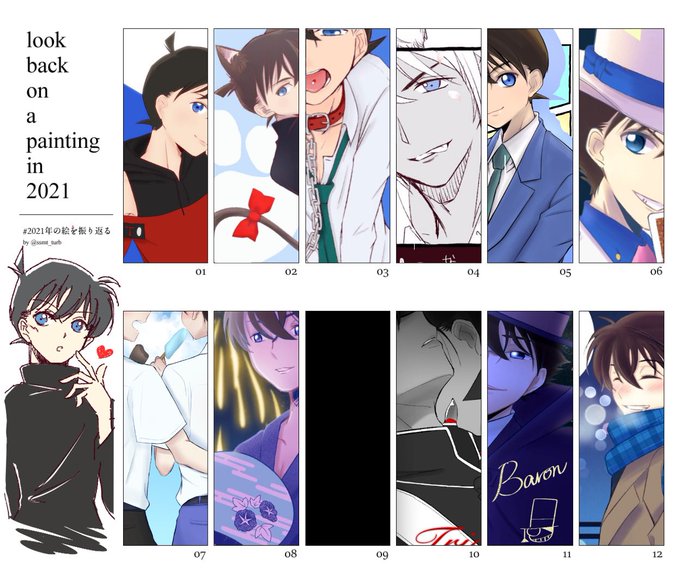 #2021年の絵を振り返る 名探偵率高し👼🏻そして下半期時間無さ過ぎ泣いた… 反応頂けたりリプ頂けるの本当励みになっております! ありがとうございます☺️ 来年はもっとお勉強してたくさん描けたらいいな