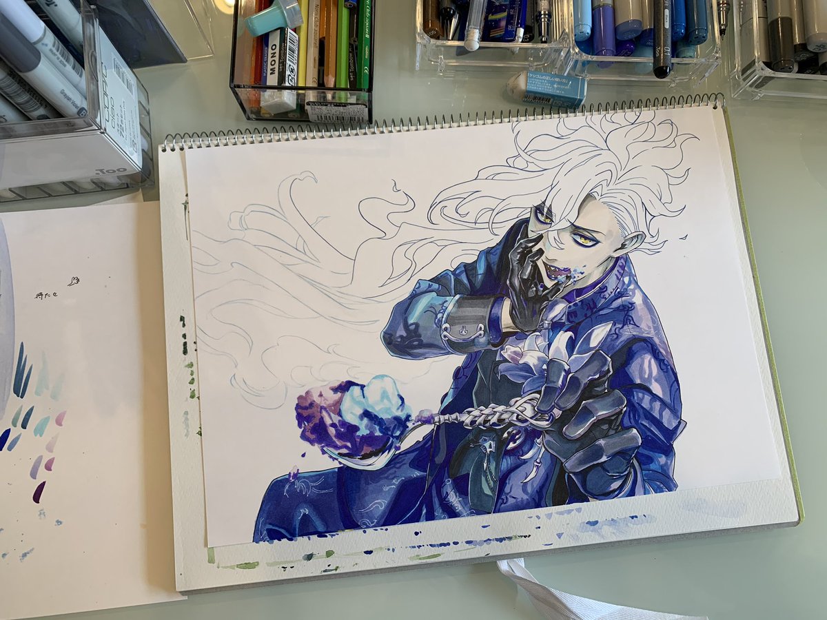 黒関連ではないんだけど おふたりのお名前もわからないのだけど🤣ロメオなんでしょ? コピック色塗りもまたいい勉強になったよ(*´∇`*) おつかれぃっ\\\\٩( 'ω' )و //// #HoneyWorks #コピック