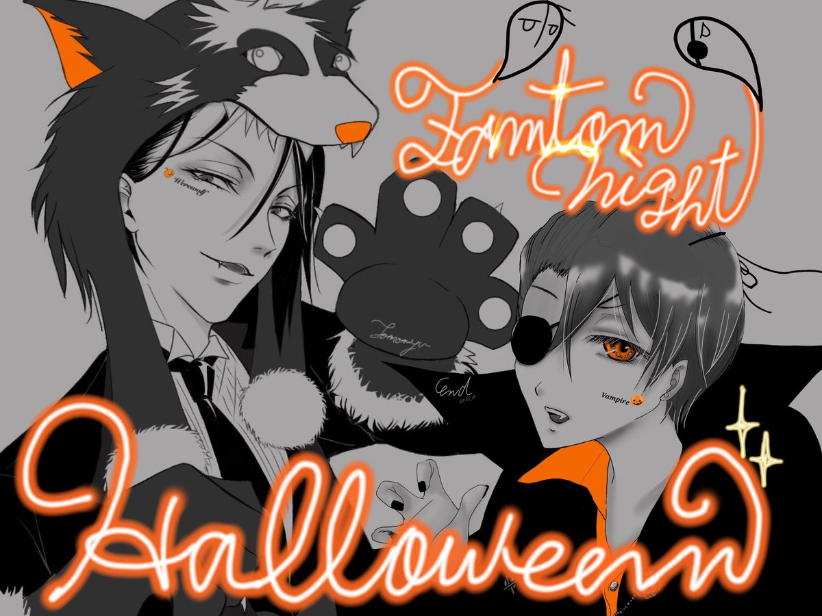 ☠🎃HappyHalloween🍭🍬 ENDさん@96bitter_rabbit のヴァンパイア坊ちゃんと、私狼セバスでコラボさせていただきました🥺✨ 全体イメージや文字作って頂いて感謝です٩(*´`*)Tank you♥ #黒執事 #黒執事ファンアート #halloween2021