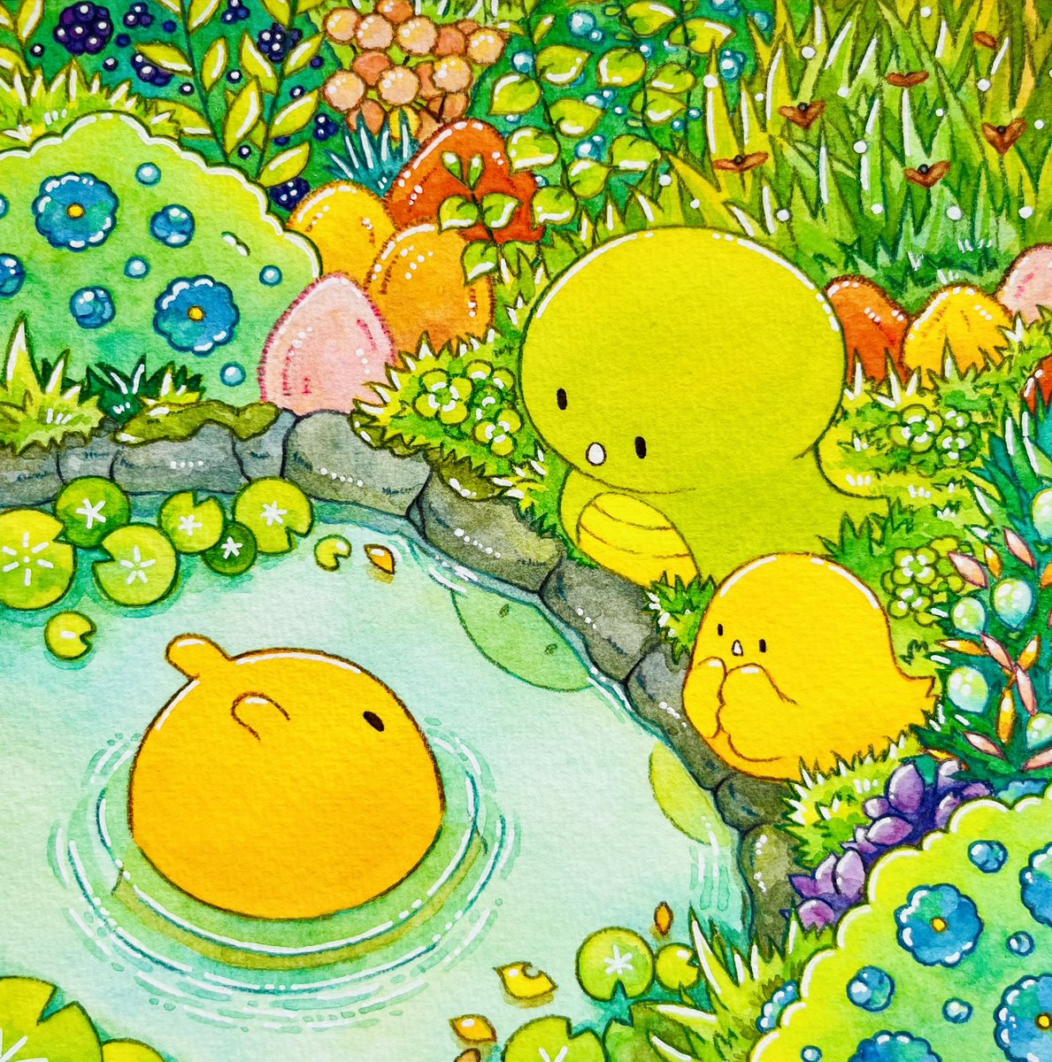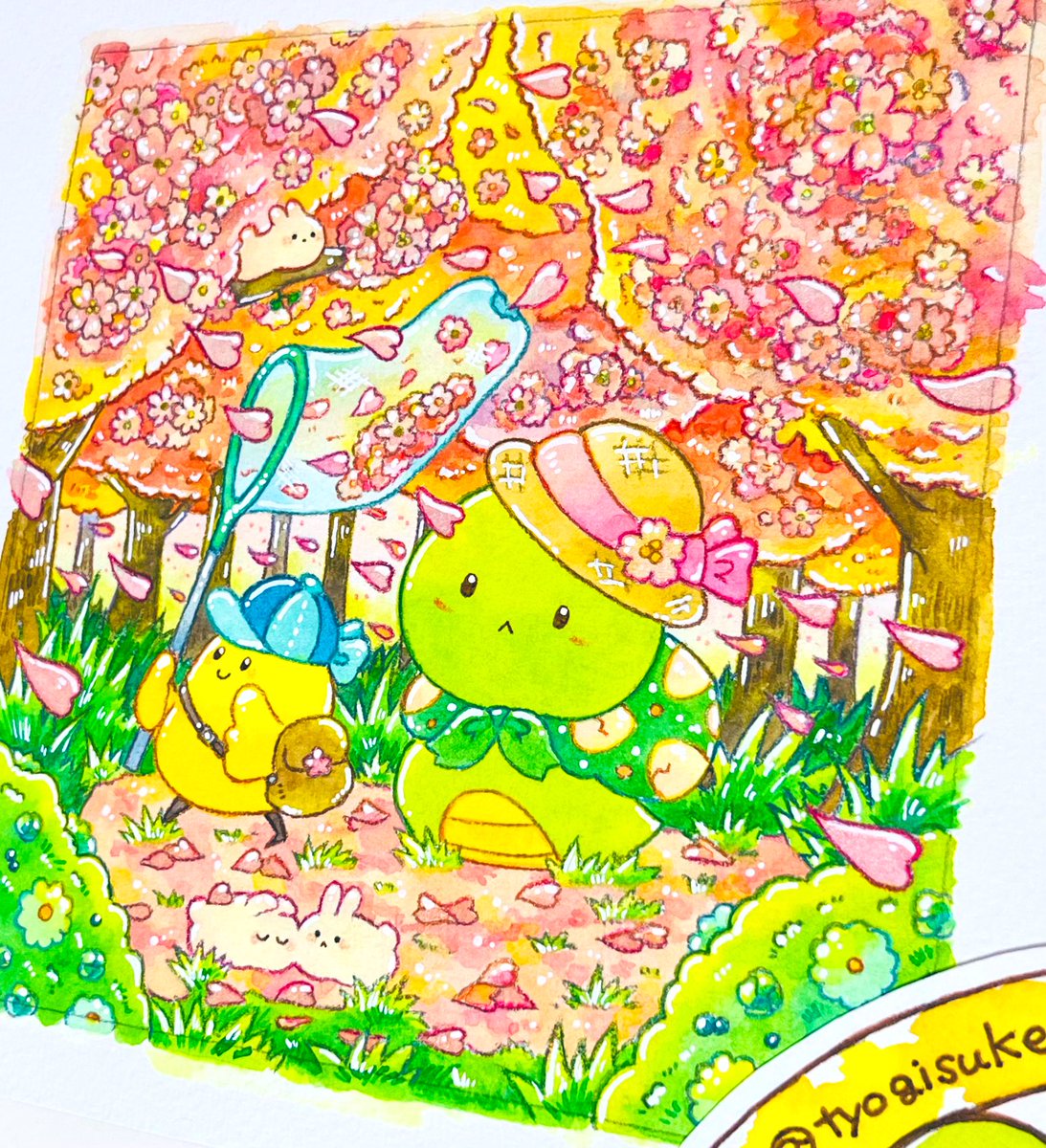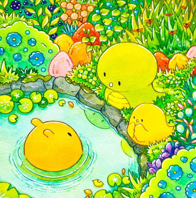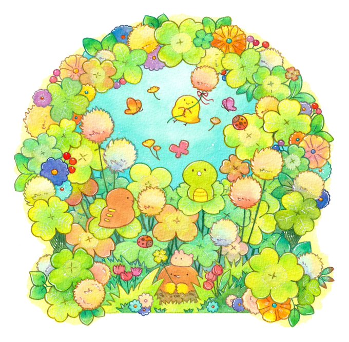 #一次創作絵師拡散フェス03 素敵なタグ企画にご参加させて頂きます🌸 水彩と色鉛筆等でのほほん〜としたゆるいミニキャラ達を描いてます🎨 明るい色味が好きです💛🧡💚