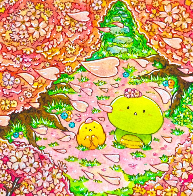 満開🐍🐥🌸 #ゆるいイラスト