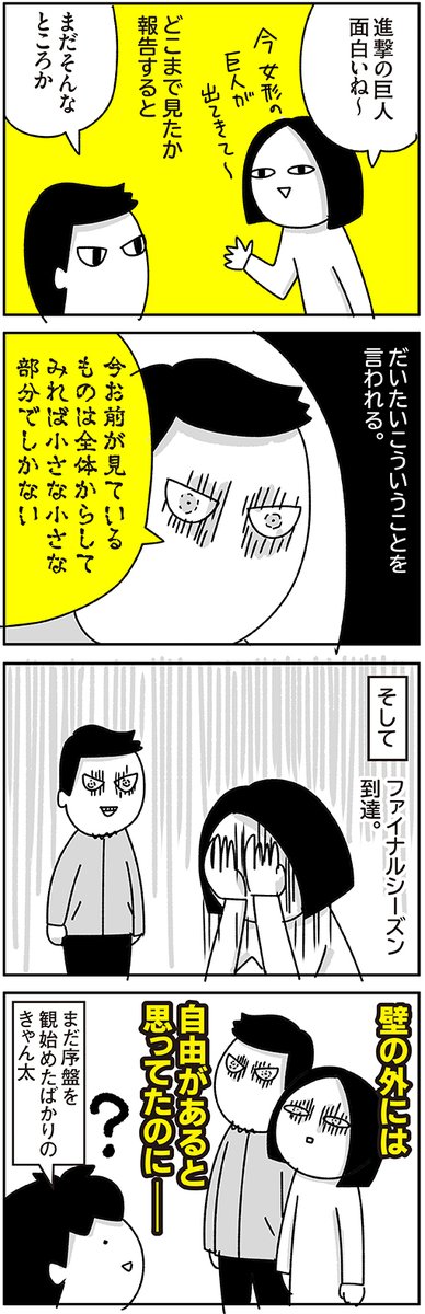 進撃の巨人76話をみた。 息子、「進撃だけは集中して一人で見たい」って言って旦那も同じこと言ってて 一つ屋根の下 三人それぞれ別々に見た。 なにそれ… ハマり出した時の話↓ chokko-san.com/entry/2021/02/…