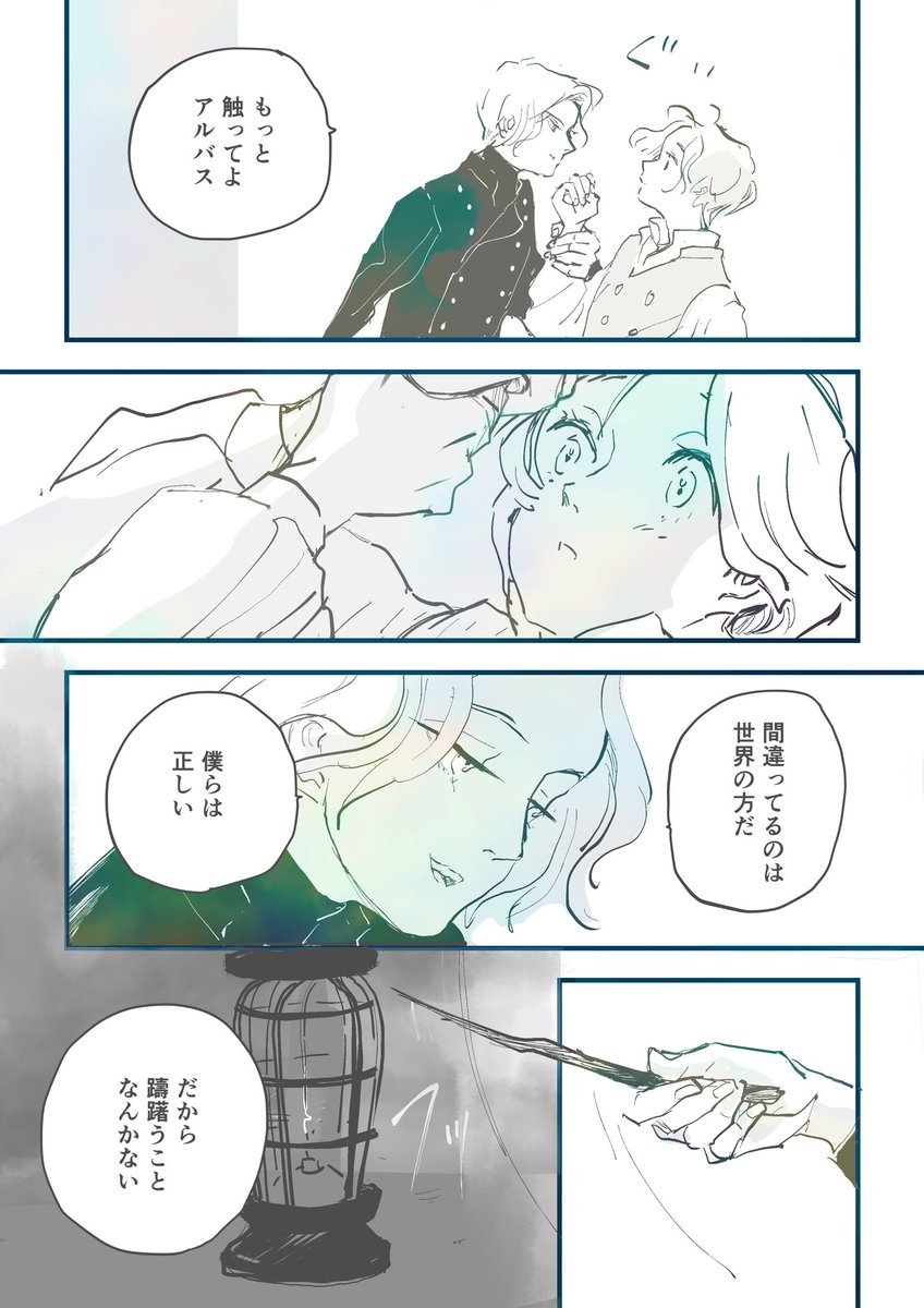 ゲラアルが描きたいなーと思って描きました ゲラートは相手が一番聞きたい言葉を一番聞きたいときに言えそう この能力はジェームズも持ってそう 恋するアルバスの顔描くの楽しい