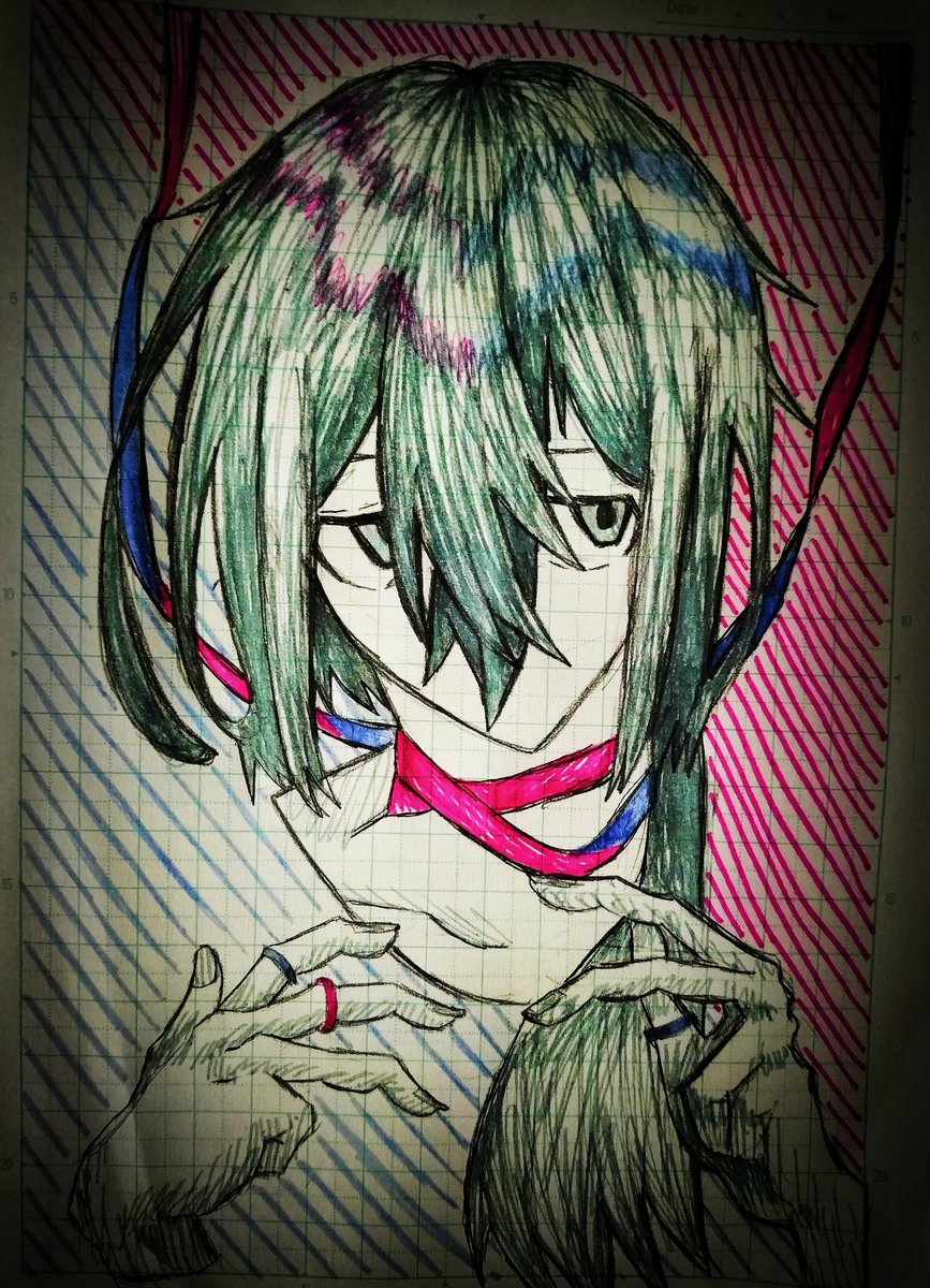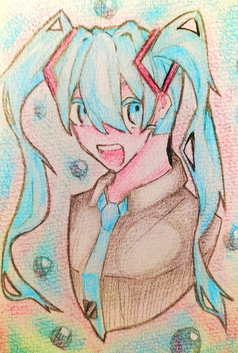 1 1 5日目!色シャー芯あったけどシャー芯にあったサイズのシャーペンが無かったので素手で芯掴みながら描きました #100日チャレンジ #イラスト #初音ミク 23/06/30 18:30