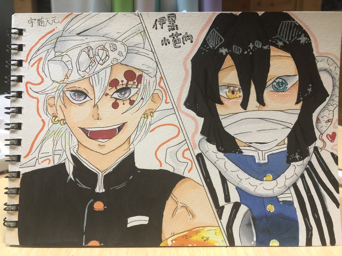 ででん♪ 伊黒さんは前載せたよね?(-ω-;)アレ? 左は宇髄さん!分かる?( ・᷄-・᷅ ).。oO 個人的に頑張った😏👍 #絵描きさんと繋がりたい #絵描きさんと仲良くなりたい #コピック #アナログ #鬼滅の刃 #宇髄天元 #伊黒小芭内