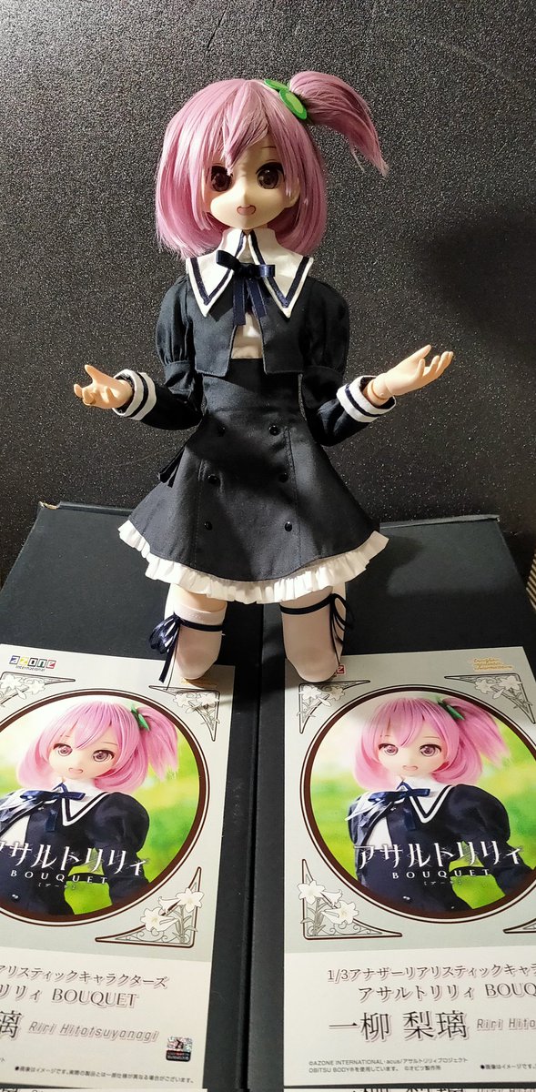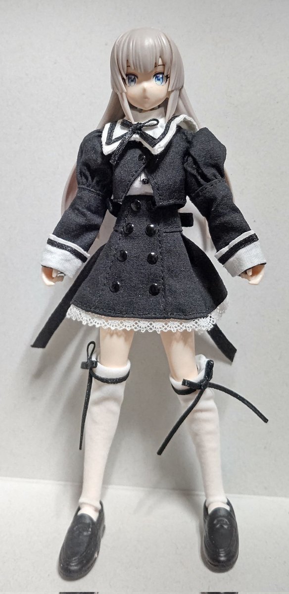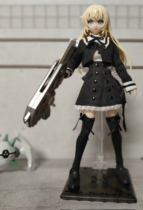 そして気になってる方もいるだろうけど… チェミルちゃんをモデルにしていますが百合ケ丘制服のSは余裕で着れます ただし首は埋もれるのでなんとかして伸ばすか写真のようにとりあえず乗せてごまかす必要あり。 流石にゆーじあさんの狙撃いポーズは無理だけどよく動きます。 #アサルトリリィドール部