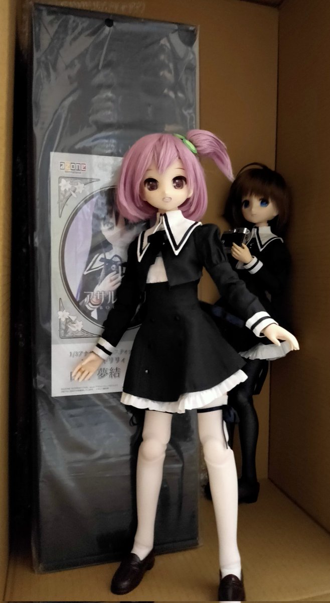 先日出たHASUKIの1/12 萩フィギュア 首は5ミリボールジョイントなのでウェーブのBJ−05でアサリリドールとすげ替えができる 一旦脱がせると戻すの大変そうなので制服を着せられるかはまた後日 #アサルトリリィドール部