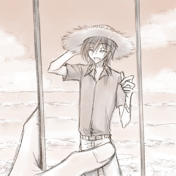 #スザルル版深夜の絵描き文字書き60分一本勝負 お題:海 「夏旅」※現パロ