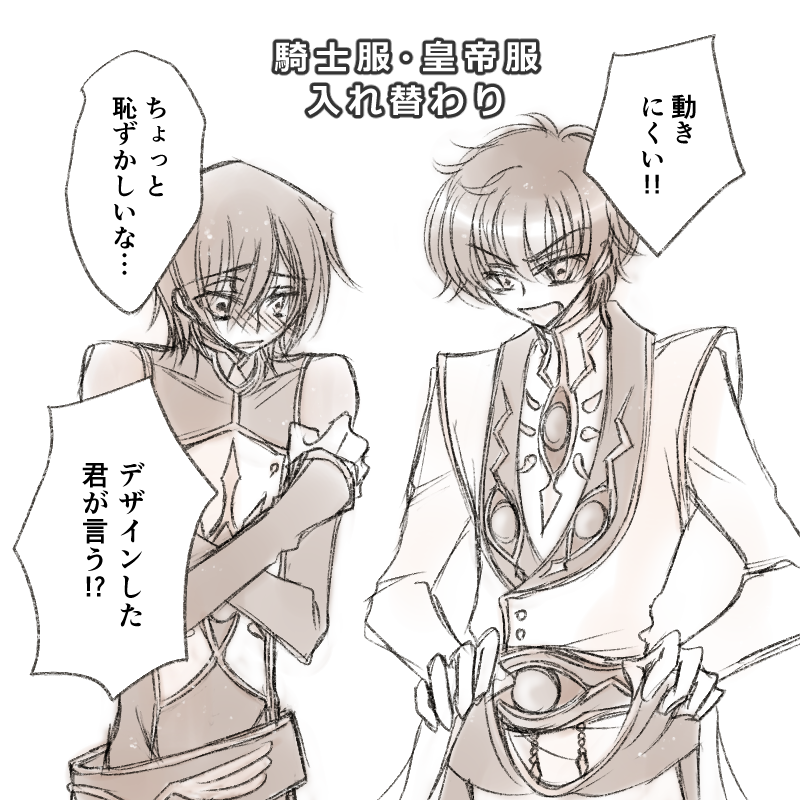 31 129 第90回目の開催おめでとうございます!いつもありがとうございます! #スザルル版深夜の絵描き文字書き60分一本勝負 お題:入れ替わり 騎士服と皇帝服入れ替えてみました~!楽しかった!! 21/10/23 23:24