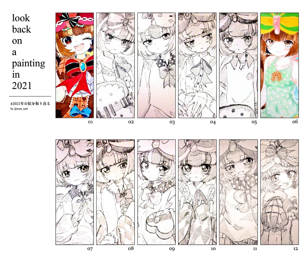 16 39 #2021年の絵を振り返る 白黒絵がほとんどで塗りを全くこなせられなかったのは残念でしたが、そのぶんたくさん描きました。今年も楽しかった。 21/12/25 11:57