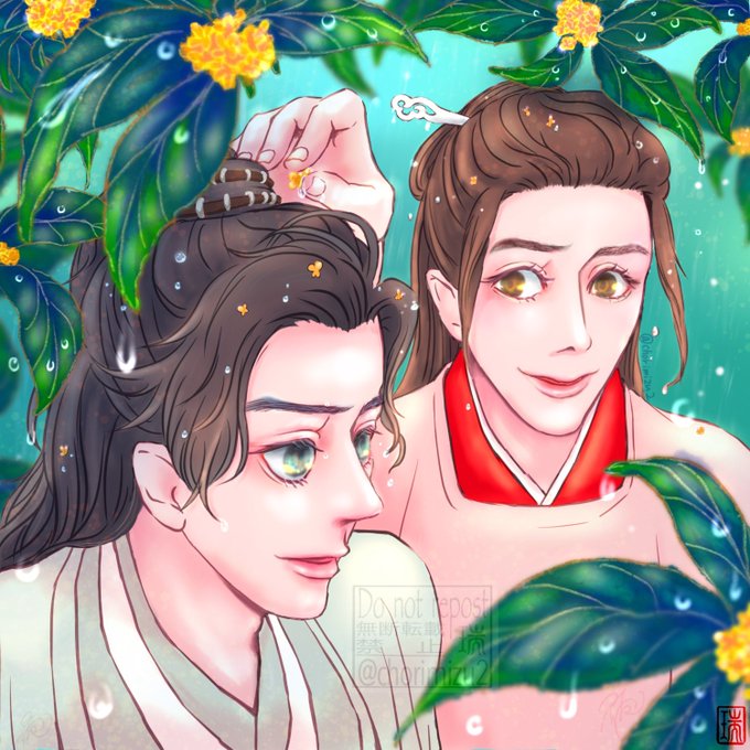 衍と⼦舒。現代AU?? 古武術道場四季山荘。春の特別古装稽古です。 「花は常にあり、天下の事情を知り尽くす」と謳われたこの山荘では、多様な世界の文化を体験しかつ仲間との円滑な意思疏通をはかるため、特別古装稽古の後、門弟たちによるフォークダンスが行われます🌸 #四季の山ドロライ