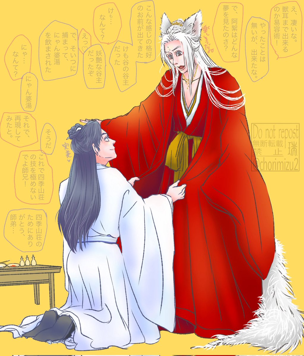 26 193 秋の山 実りのドロライ お題「まなぶ」 一人でのお留守番が少々トラウマになってる雪山の知己のお話。 阿絮は基本的に心を許した知己には可愛い行動を取っちゃう人です!! #秋の山ドロライ 22/09/28 21:00