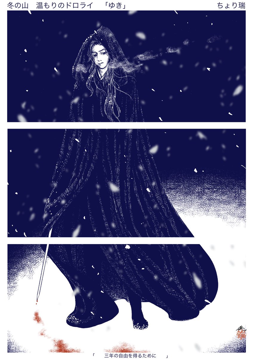 冬の山温もりのドロライ 「ゆき」 三年の自由を得るために。 雪のなか、かつての配下でもあった煩わしい追手を迎え討つ。 #冬の山ドロライ