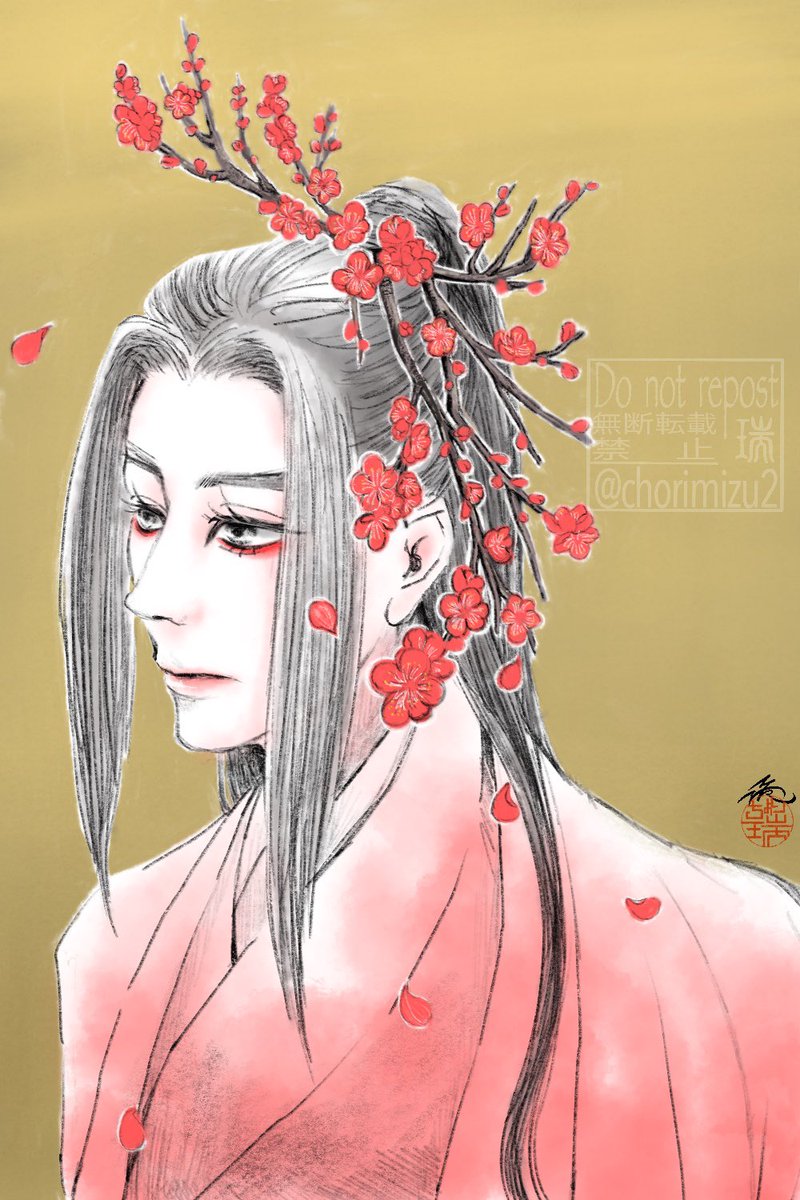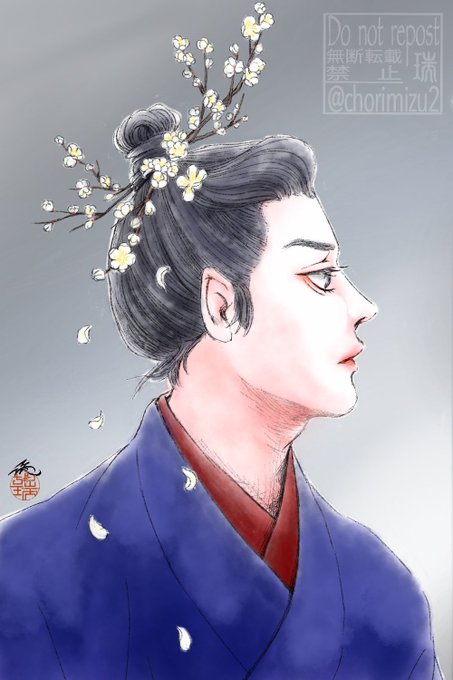 四季の山ドロライ 「うめ」 首領に白梅。 谷主の対になる絵です。 清廉な中に微かに漂う色香。 梅花のような人🌸 #四季の山ドロライ twitter.com/chorimizu2/sta…