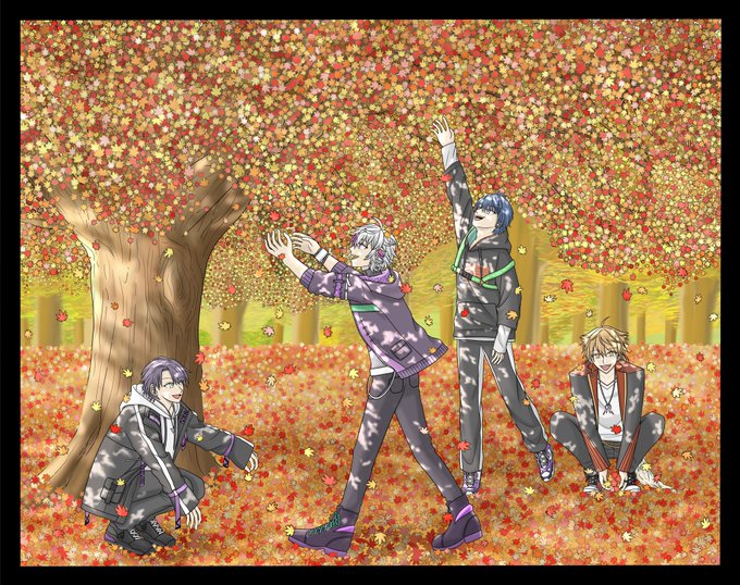 紅葉狩り🍁 不破「オーライ!オーライ!」 剣持「一番はしゃいでるじゃん」 春崎「お、届きそ!」 伏見「焼き芋できんじゃね?」 #金剛力也像 #絵スコート #絵アル #絵ガク