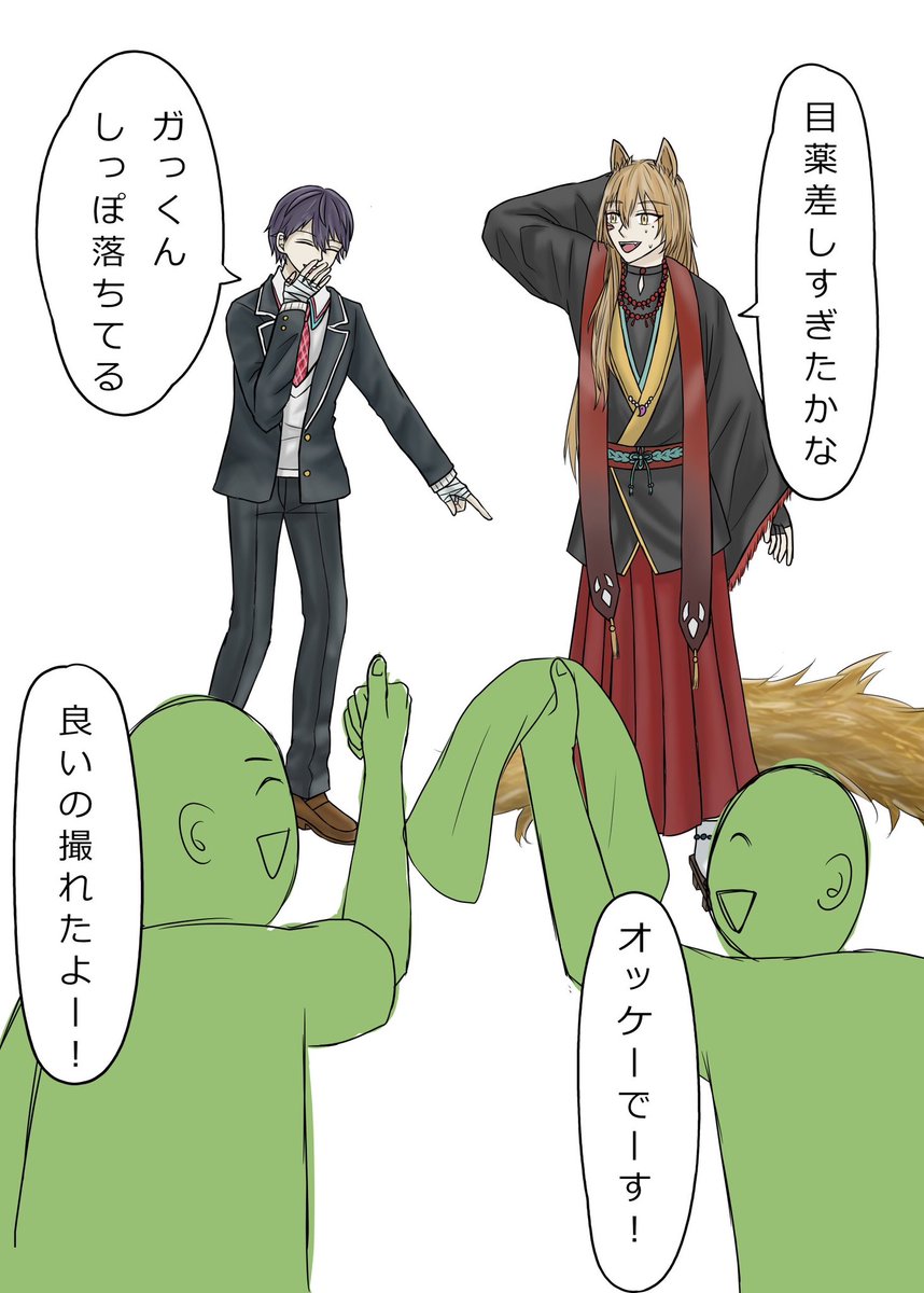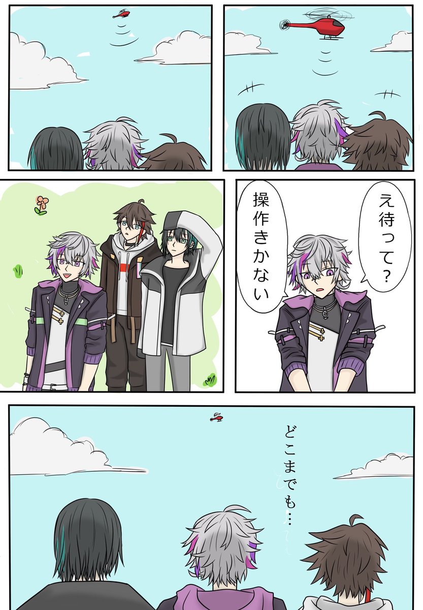 葛「重え!無理!」 不「俺飛んでる!」 三「大丈夫!?落ちない!?」 叶「じゃんけん負けたのお前だから」 黛「めちゃくちゃ綺麗じゃん」 #絵スコート #さ絵ぐさ #灰画 #KuzuArt #かな絵