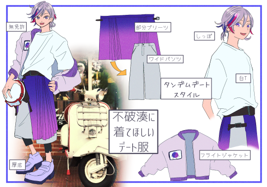 ふわっちにはおしゃれなスクーターでタンデムデートしてほしいな(なお免許 #絵スコート #不破湊新衣装コンテスト